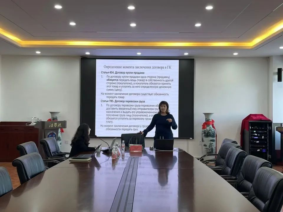 主办的“俄罗斯法学理论与实务系列讲座”第七期在汇文楼832会议室举行。切尔努西老师对俄罗斯民事合同的体系、概念与其纠纷解决进行了详细的分析和讲解。