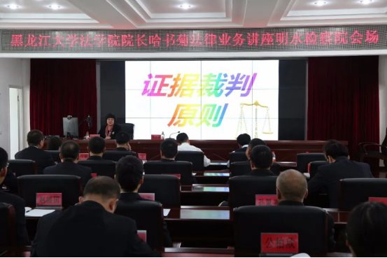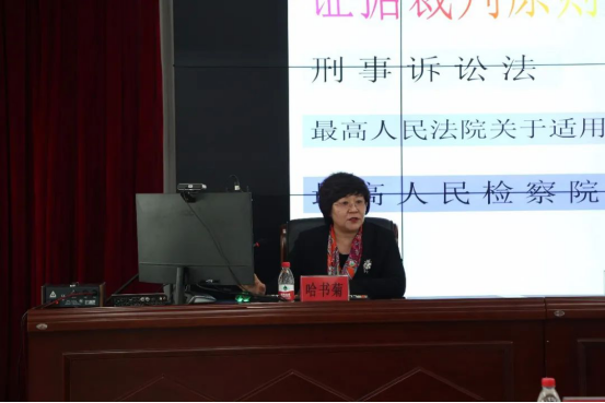 哈书菊院长在明水检察院会场,通过绥化检察官网校平台为全市检察干警作了题为《刑事证据裁判原则》的首场法律业务讲座。(乐鱼