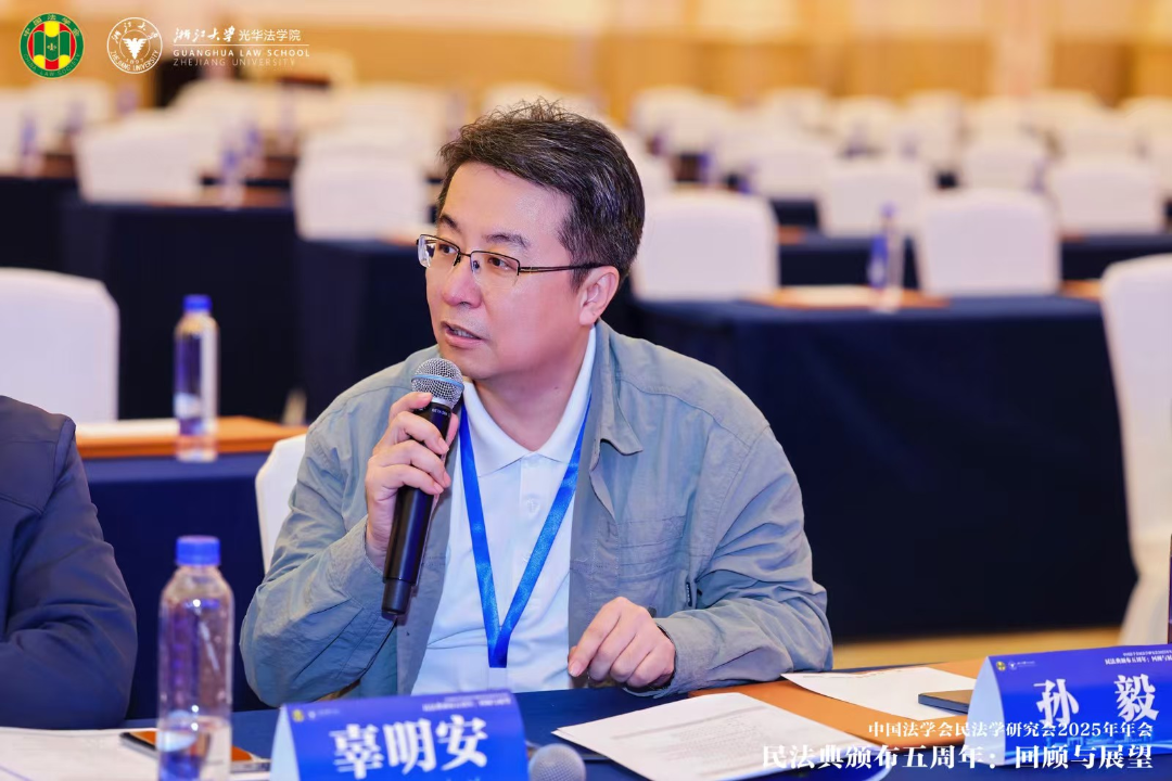 李憣副教授在年会第一分会场担任与谈人,参与“全面贯彻实施《民法典》的基本问题”研讨会第三单元的讨论。本单元研讨聚焦于多项前沿议题,主要包括:中国自主民法学知识体系的构建与方法论创新、《民法典》习惯法源的司法适用、环境民事公益诉讼中的公民主体资格问题、环境法法典化的价值基石与制度先导、弱势群体权益保护规范群的理论基础,以及绿色原则的司法适用困境与完善路径。与会专家旨在厘清上述议题的理论脉络,并深入探讨其核心主张的实践路径与制度走向。