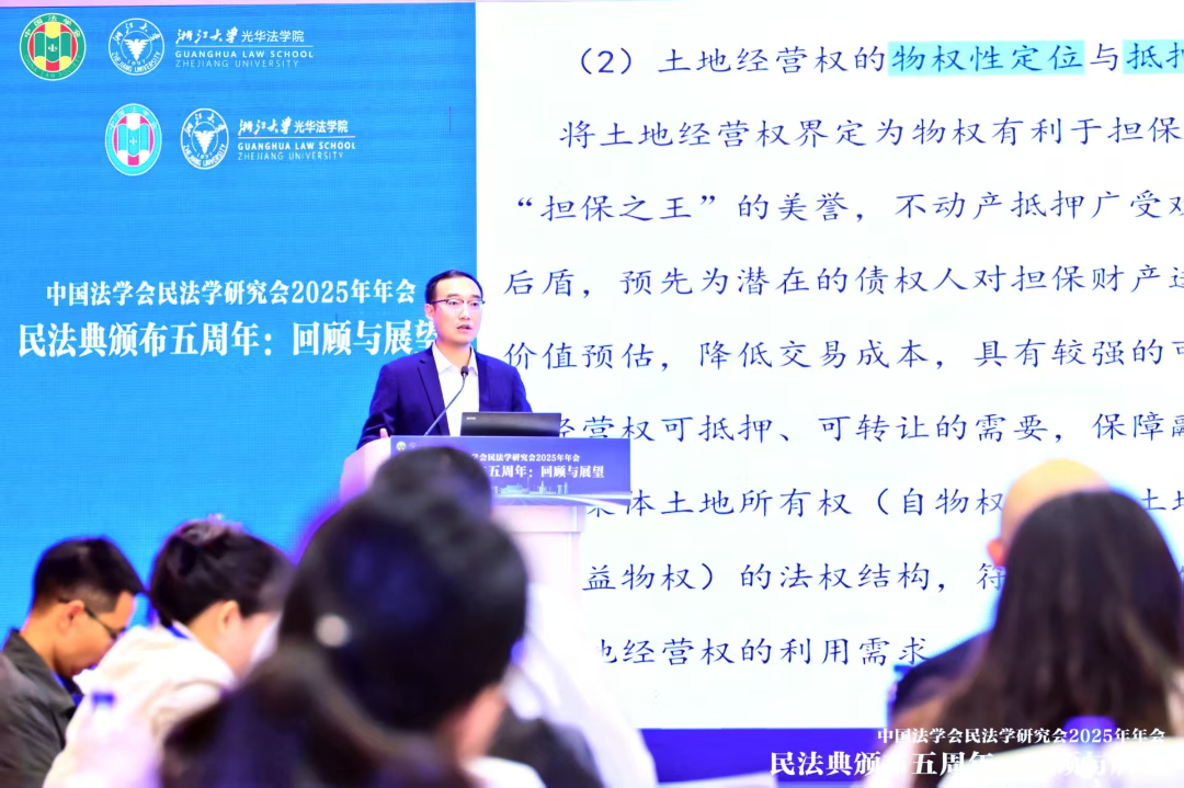 申建平教授在年会第三分会场《民法典》物权编实施问题研讨会第二单元,作了关于“城乡融合视域下土地经营权登记制度研究”的主题报告。申教授指出,尽管农地流转是激活农村资源、促进城乡要素双向流动的核心环节,但长期以来,该领域所沿用的“登记对抗”模式,不仅与《民法典》物权编所构建的严谨物权理论体系存在内在张力,更与全国各地广泛探索并推进的土地经营权抵押融资等具体实践产生了显著的现实冲突。这一深层次的制度性障碍,已成为制约农地资源高效、规范流转的瓶颈,亟待从立法层面予以突破。值得关注的是,正在制定进程中的《不动产登记法》为此问题的解决提供了至关重要的立法契机,应充分利用此次立法机会,确定土地经营权的“登记生效主义”模式。