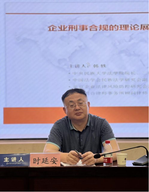 第一个环节由时延安教授主讲。时延安教授首先以一项司法改革如何形成的问题为导向,引发现场同学对刑法研学的兴趣和思考。通过介绍涉案企业改革的政策目标,指出保企业的经济目标和立规矩的法治目标,以公权力方式促进企业合规治理是一个历史经验,也是历史必然。随即提出涉案企业合规改革的约束条件,从三方面来进行阐述。针对企业刑事合规所面临的挑战与出路,时教授从符合职权属性原则、实体与程序一致原则及一体性原则三个原则来对继续推动涉案企业合规改革的路径选择进行了检视。引发了现场师生针对企业刑事合规改革的进一步思考。