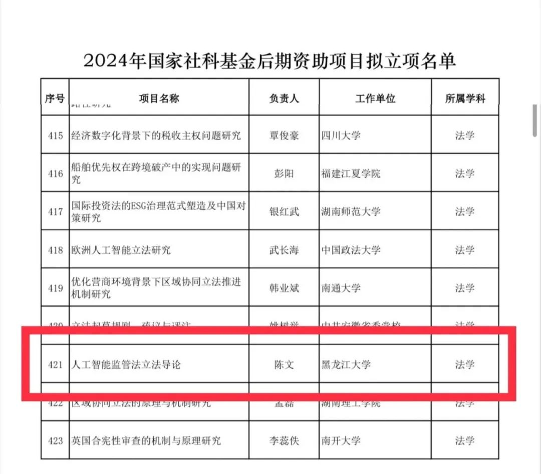 按照《国家社会科学基金管理办法》有关规定,全国哲学社会科学工作办公室对2024年国家社会科学基金后期资助暨优秀博士学位论文出版、优秀学术著作再版项目立项名单进行公示。其中乐鱼 陈文教授名列于2024年国家社科基金后期资助项目拟立项名单中。
