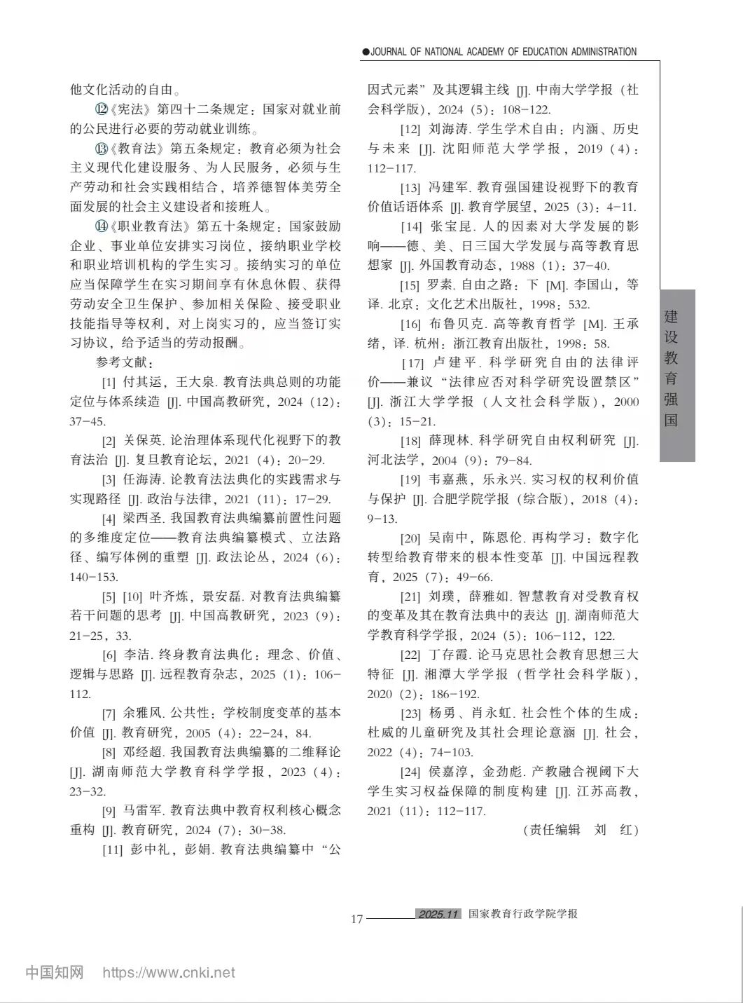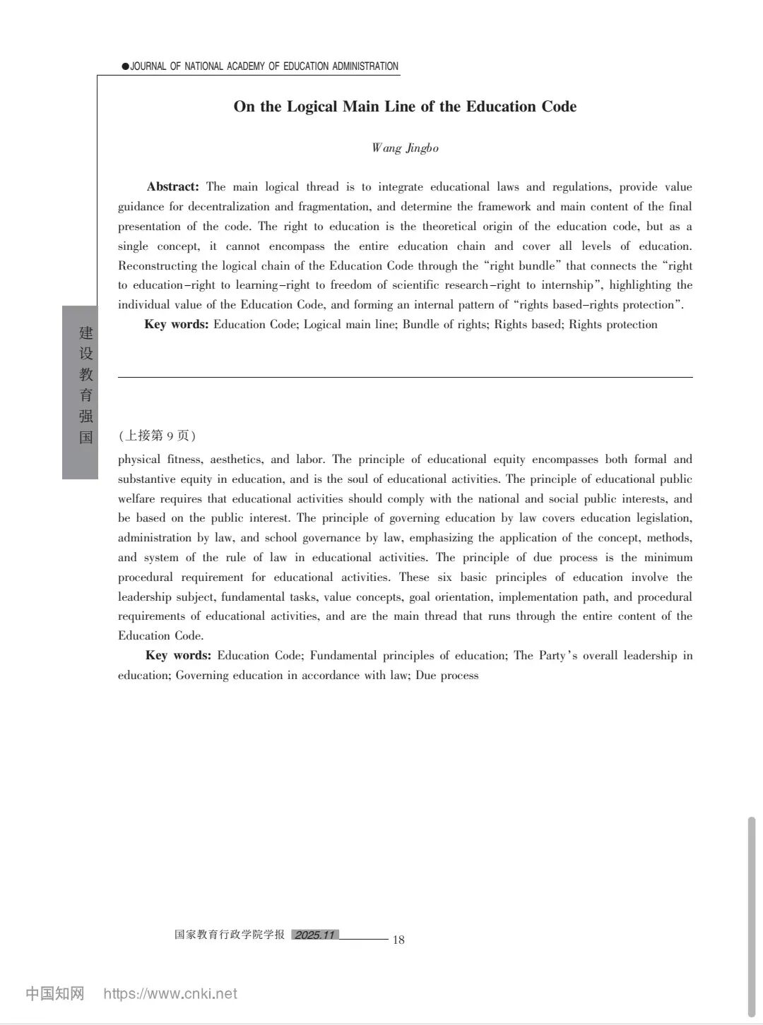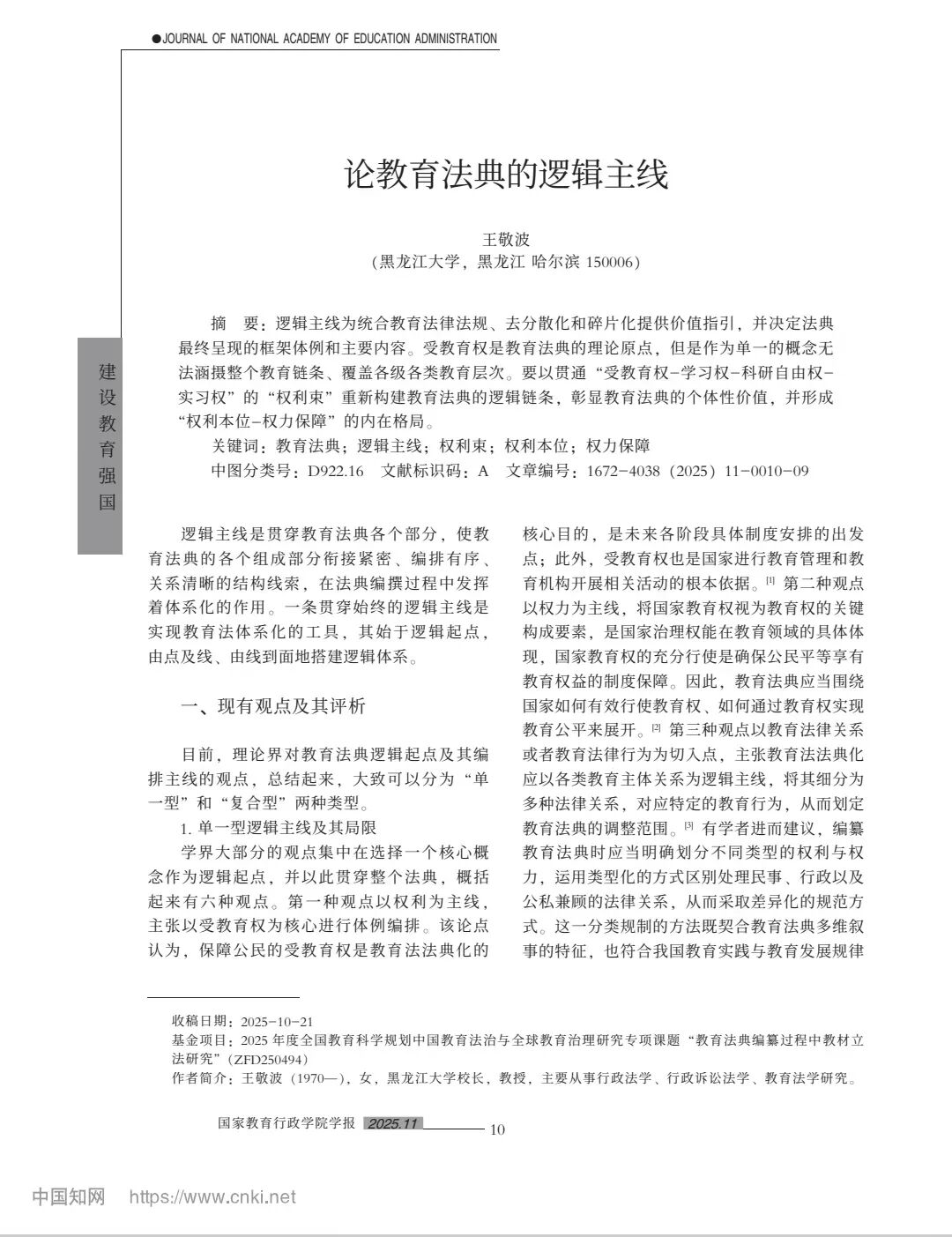 乐鱼 校长王敬波教授撰写的论文《论教育法典的逻辑主线》发表于《国家教育行政乐鱼 学报》2025年第11期(总第334期)10-18页。