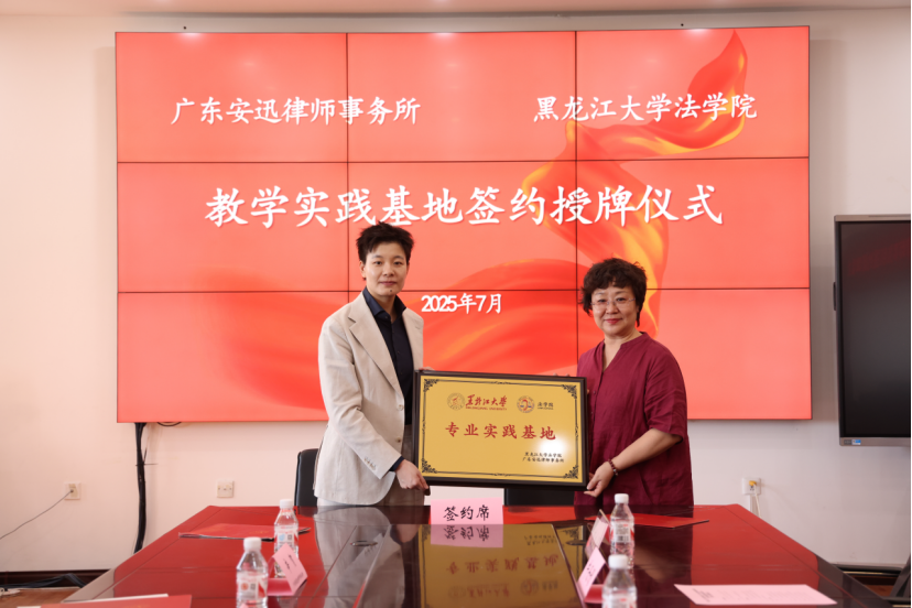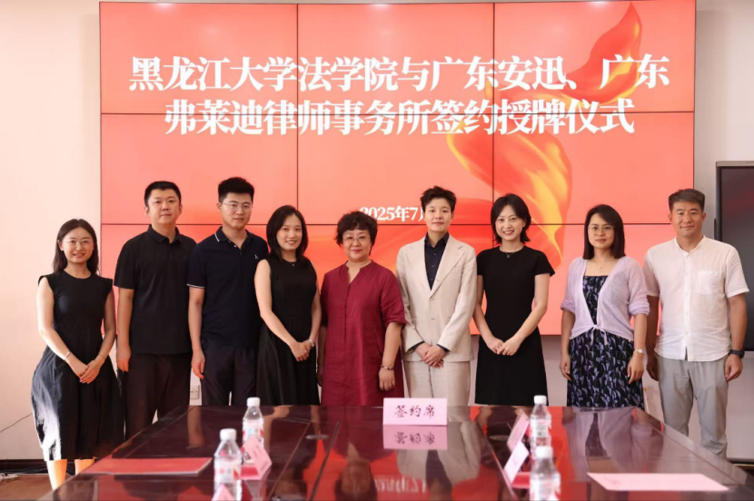 ,分别与广东安迅律师事务所、广东弗莱迪律师事务所签署了共建校外实践基地合作协议并进行授牌。