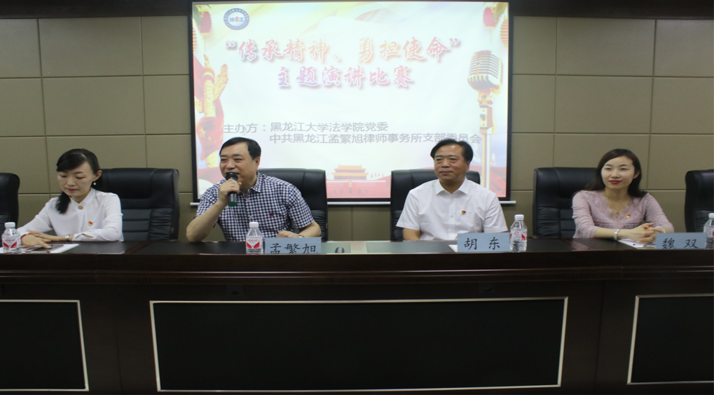 党委、黑龙江孟繁旭律师事务所党支部联合举办的“传承精神,勇担使命”主题演讲比赛在孟繁旭律师事务所举行。