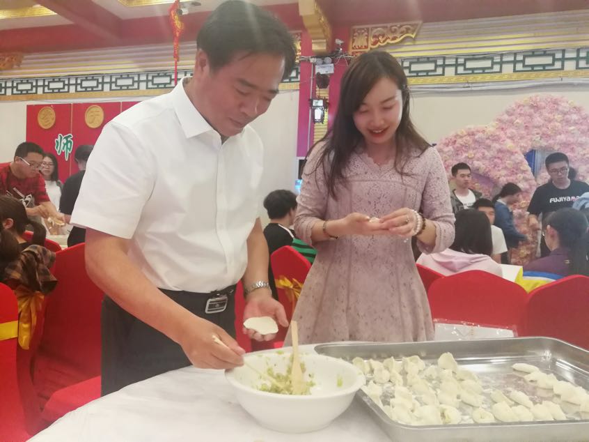 2019届毕业生辅导员常明阳和2019届毕业生代表参加此次活动。共享饺子宴,共叙师生情。