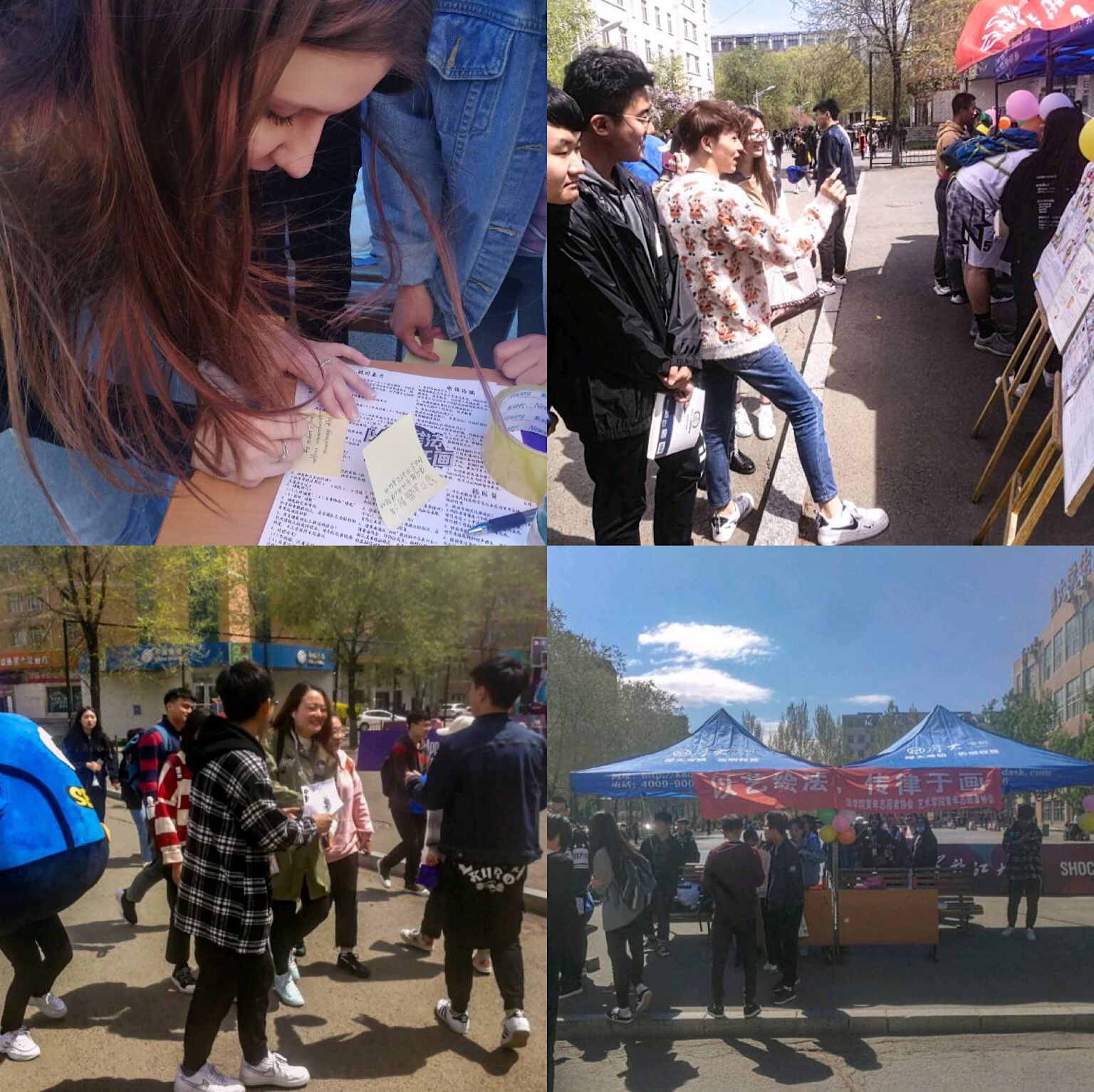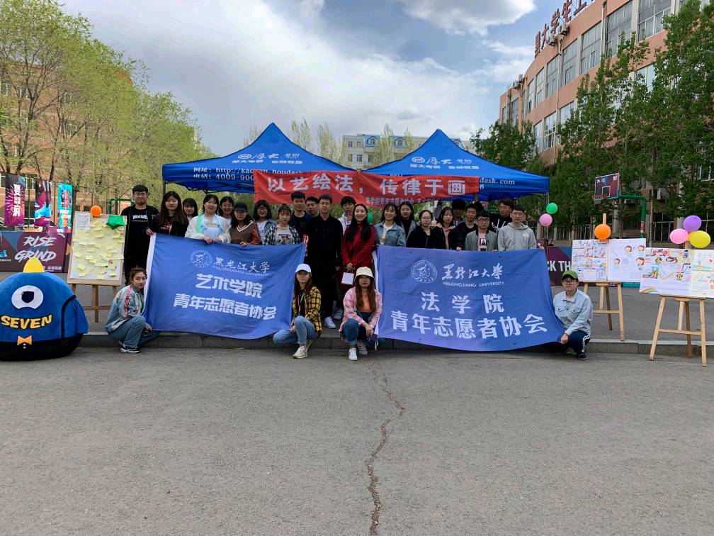 青年志愿者协会于5月6日在B区篮球场举办“以艺绘法,传律于画”联合外展。