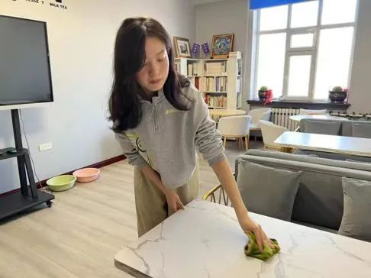 志愿服务过程中,志愿者们对教研室门窗、桌椅、地面进行彻底清扫,以此行动感谢老师在过去一年的辛苦付出,在新的学期能够心情舒畅地开展教学工作贡献力量,助力文明校园建设,擦亮校园名片。