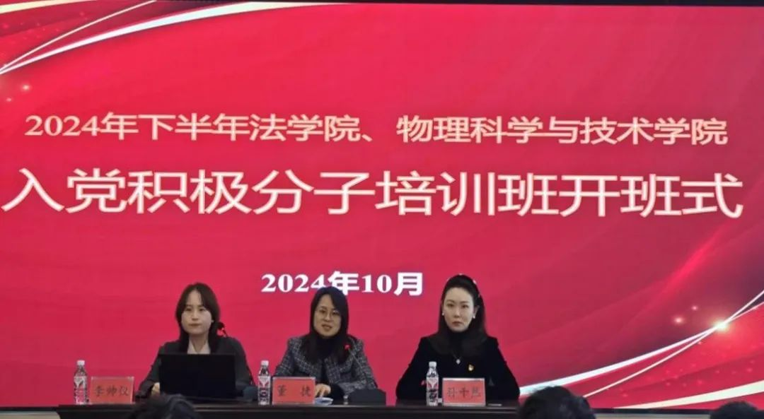 李帅仪详细介绍了本次培训班的学习安排。董捷进行致辞讲话,对参与培训的学员们提出三点纪律要求:一是遵守学习纪律,认真学习交流;二是端正考核态度,高质量完成各项培训任务,认真准备结业考试;三是学以致用,努力将学习成果细化为能力本领,主动运用党的科学理论指导实践。她表示,希望全体学员能够严格遵守培训班纪律,珍惜学习机会,在学习的过程中切实净化入党动机,不断提高自身觉悟与修养,积极向党组织靠拢。