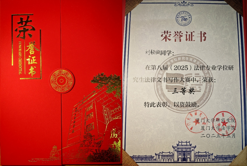 学生刘毅璇表现优异,以扎实的专业基础充分展现了法治人才风采。经过评委评审,刘毅璇与来自厦门大学、华东政法大学等高校参赛选手一同获得本次法律文书写作大赛三等奖的出色成绩。