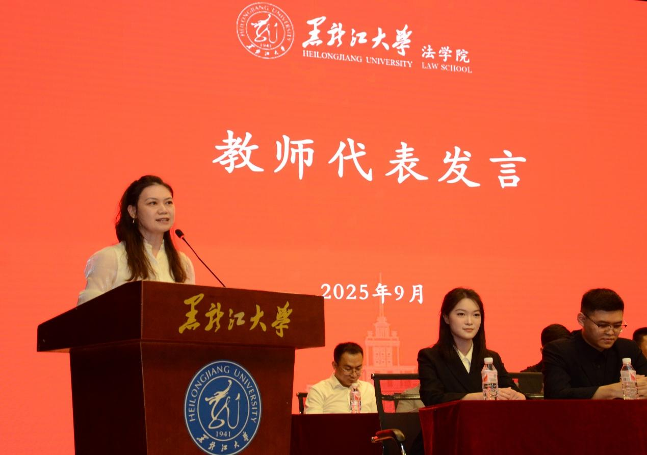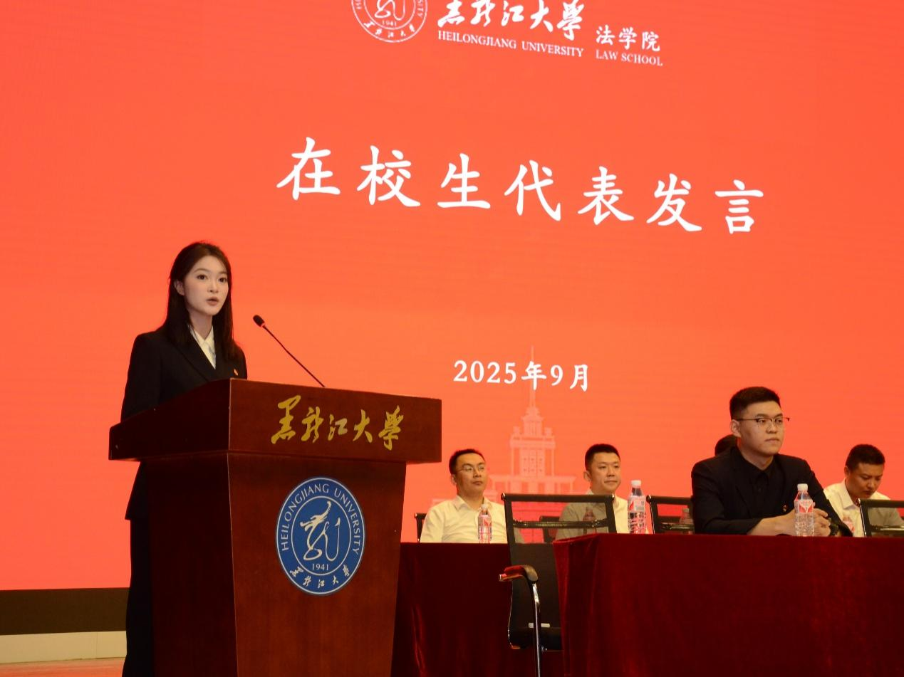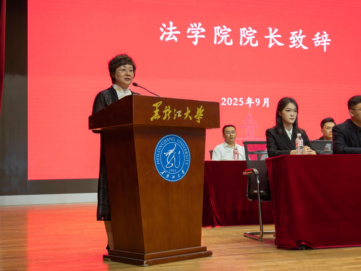 深厚的办学传统与卓越成就,勉励新生珍惜时光、奋发有为。她向同学们提出三点期许:一要夯实专业根基,系统建构法学知识体系,培养思辨能力与服务社会的使命感;二要立大志、勇作为,将个人理想融入法治中国建设的时代浪潮,以信念为舵、学识为帆,努力成长为法治栋梁;三要胸怀家国,恪守责任,将爱国情怀与法治信仰相结合,以专业能力守护公平正义,在民族复兴的伟大进程中绽放青春光芒。最后,她祝愿新生在黑大乐鱼