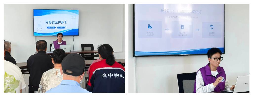 志愿者围绕“网络安全”主题,通过法律宣讲、案例援引等方式向社区居民详细讲解了如个人信息泄露、网络钓鱼和恶意软件等日常生活中常见的网络风险,提醒居民保护密码安全、谨慎处理网络链接,在提升居民对网络威胁的认知基础上帮助他们掌握实用的防护技能,增强社区整体的网络安全韧性。