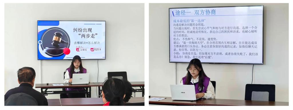 除了网络安全主题,志愿者还充分发挥法学专业特长,围绕“社区纠纷解决”进行了普法宣传,通过通俗易懂的语言,向居民讲解了邻里矛盾、物业纠纷等常见问题的合法解决途径,倡导居民通过理性、合法的方式化解分歧,拓宽了居民依法解决矛盾的思路,增强了他们通过友好协商化解分歧的意愿,为构建理性平和、依法有序的社区环境奠定了坚实基础。