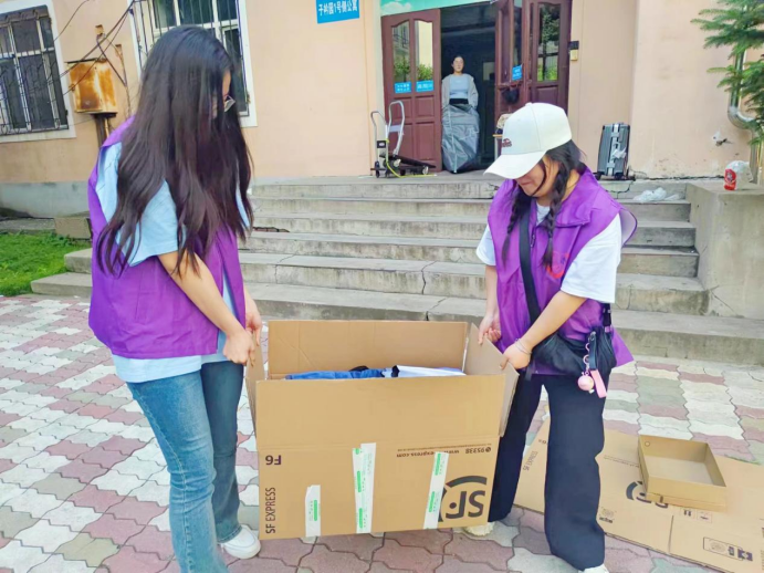活动现场,志愿者们身着紫色马甲,分组行动,有条不紊地开展各项工作。他们分工明确,有些专注于协助毕业生搬运沉重的行李,有的则投身于清理和打扫宿舍卫生的工作中,确保每一间宿舍在毕业生离开后都能保持干净整洁。志愿者们充分发扬“不怕苦、不怕累”的精神,共同配合协作,顺利完成毕业生行李搬运与宿舍整理。虽然志愿者们衣服早已被汗水浸湿,但他们的脸上仍然洋溢着笑容。最后,志愿者们也为即将启程的毕业生们送上最真挚的祝福,祝愿他们前程似锦,未来可期。