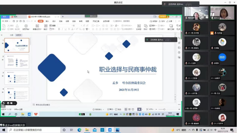 优秀毕业生孟乡以《职业选择与民商事仲裁》为主题进行两小时的职业分享,乐鱼