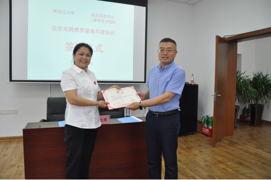 与哈尔滨市劳动人事争议仲裁院共建法学实践教学基地签约揭牌仪式在哈尔滨市劳动人事争议仲裁院成功举办。乐鱼