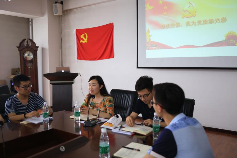 德法兼修,知行合一,增添党旗光彩。习近平总书记近日发表“励志勤学筑信念,德法兼修育人才”的重要讲话,这为青年法学人的政治品格与法律情操上提出更为严格的参照标准。魏老师指出,我们是党员,是学习法学专业的党员,在依法治国的大背景下,要将法治思维与党的建设充分融合,德法兼修,德才兼备,要将理论充分运用到实践之中,做到知行合一。