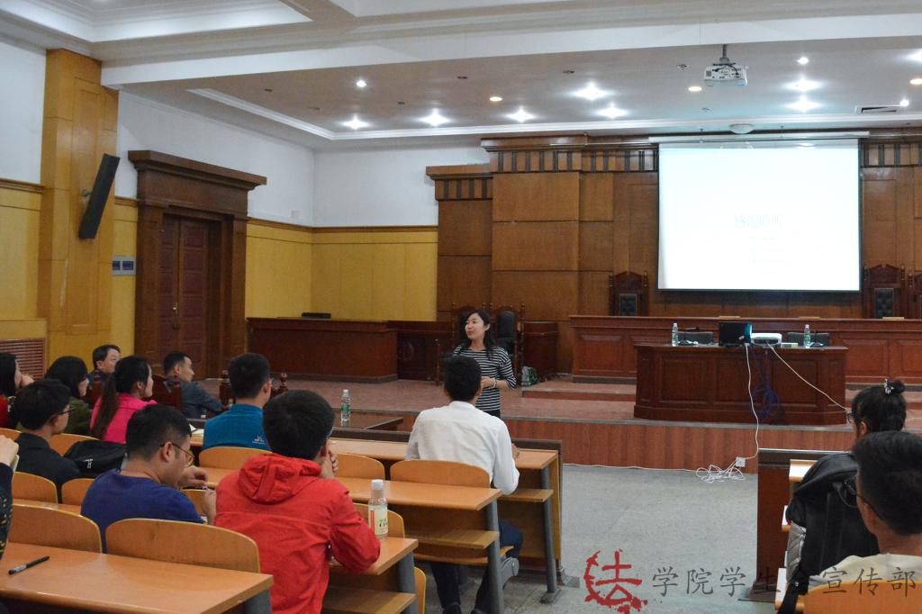 郑教授的报告题目是律师执业的基本素养。他从律师价值、形象、能力三方面对广大学生提出要求。讲座过程中,郑教授幽默诙谐的语言风格、丰富多彩的人生阅历给大家留下了深刻的印象。在讲座的最后,郑教授还告诫广大学生,要有清晰的目标、善于积累、善于调整心态、勤奋精进,这样才能度过一段充实有意义的大学时光,