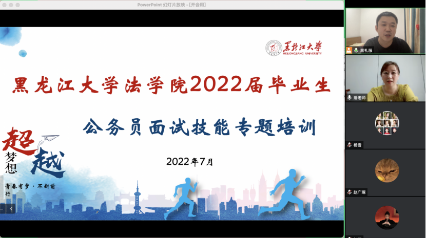于7月23日晚6时在线上利用腾讯会议平台组织开展“2022届毕业生公务员面试技能提升”培训,培训由骏图公考培训机构潘丹丹老师主讲,入围2022年公务员考试面试的全体学生参加,培训由乐鱼