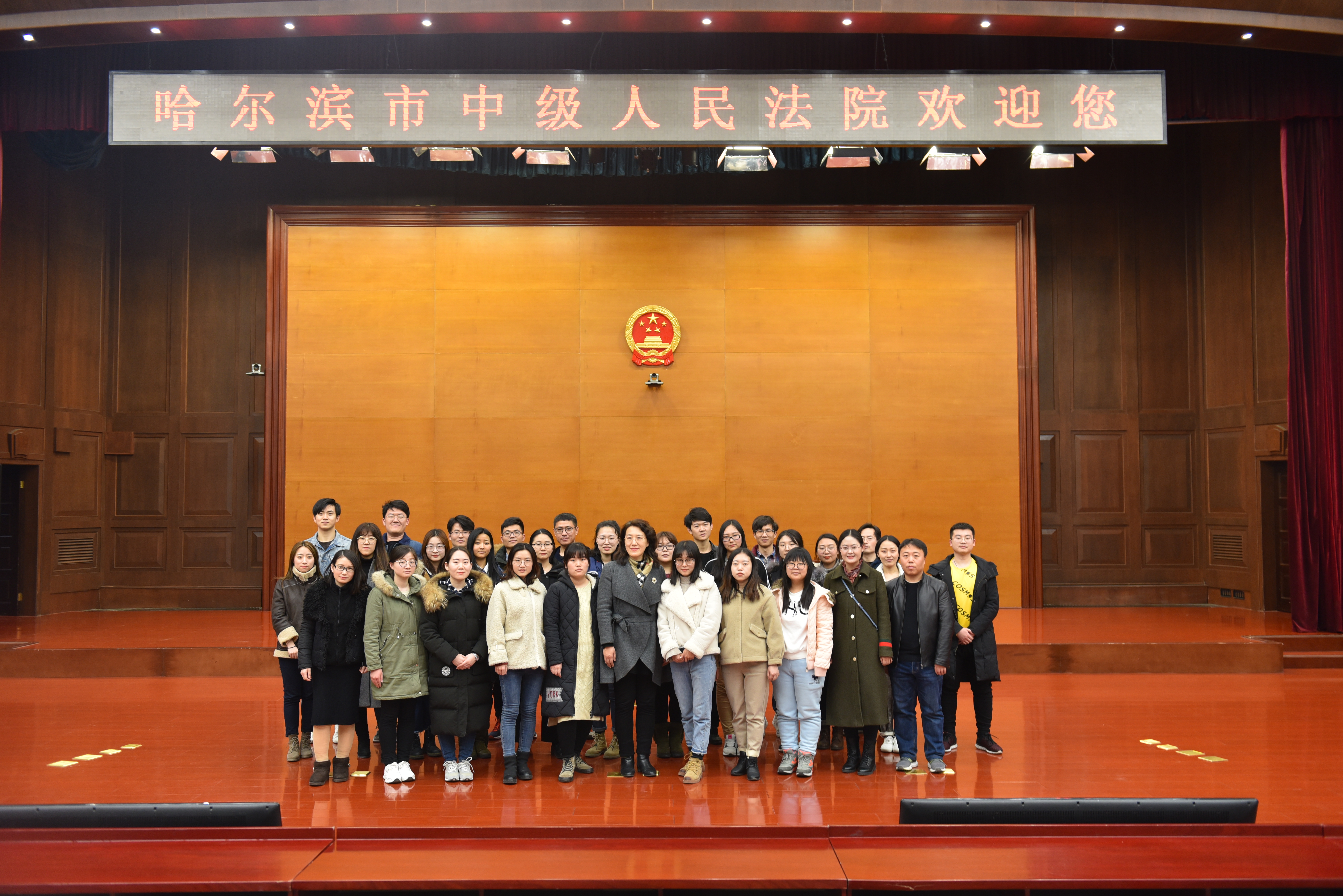 的学生,非常荣幸能够走进哈尔滨市中级人民法院,零距离的感受法治氛围,积累法律实务的经验,让同学们对法院的工作事项和流程有了更直观、更深刻的了解,作为法律专业的学生,以后大多也会从事这方面的工作,因此在学好书本上的知识的同时,也要多参加社会实践运用法律知识为社会服务,非常感谢乐鱼