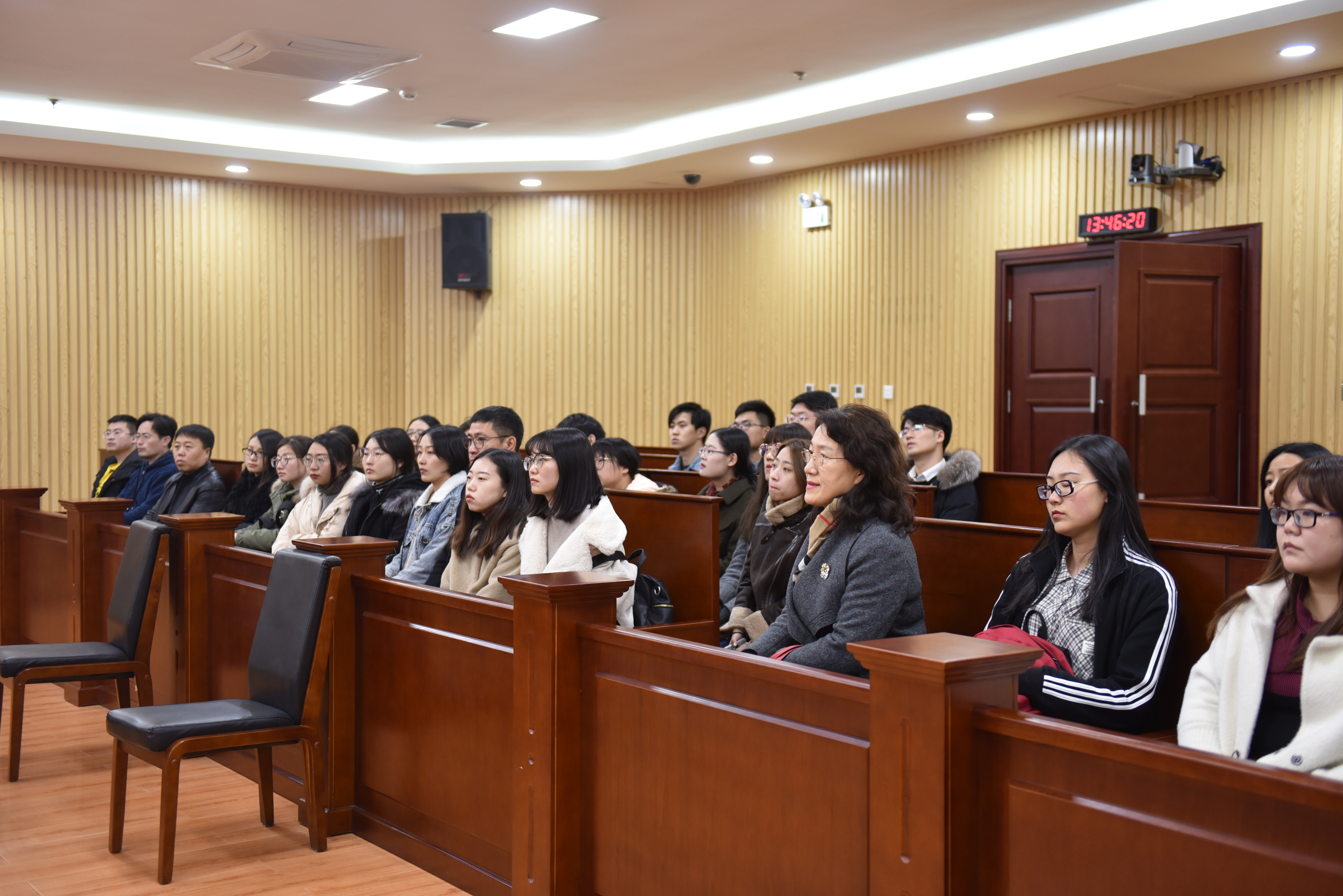 的模拟法庭旁听过庭审,真正来到法院旁听庭审还是第一次。机会难得,一定要认真的学习。”一位同学兴奋的说。在旁听过程中,同学们更是集中注意力在庭审当中,包括审判程序与审判辩论的一系列细节。并思考着,如果自己是法官要怎样分析考量,才能最终做出公平正义合法合理甚至合情的判决。