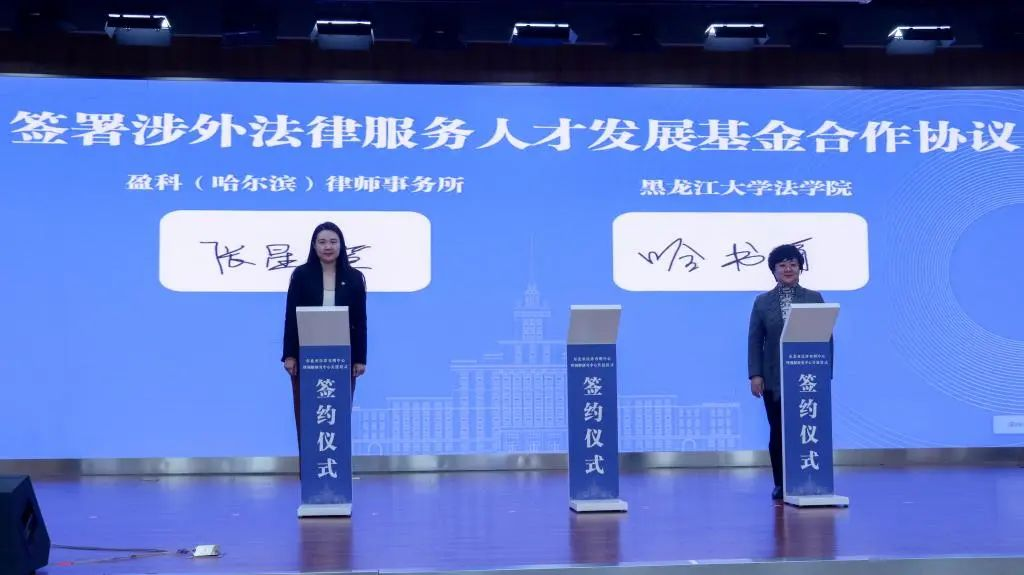 与盈科(哈尔滨)律师事务所签署涉外法律服务人才发展基金合作协议。