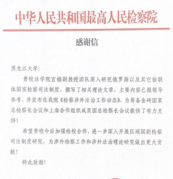 宫楠副教授团队深入研究俄罗斯及其他独联体国家监察司法制度研究方面所做的工作表示高度赞赏和衷心感谢。