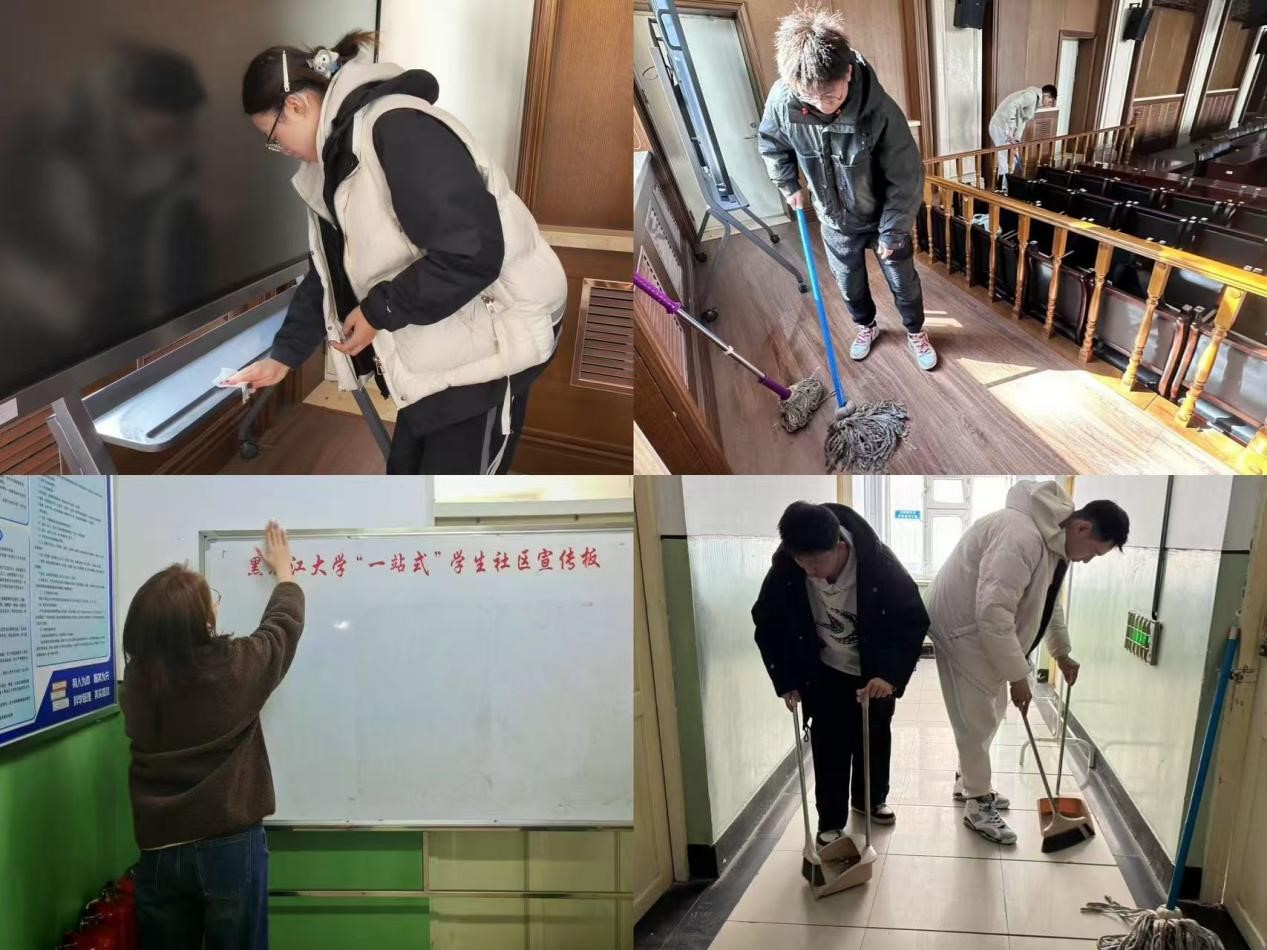 志愿服务过程中,志愿者们分工明确、干劲十足。在C19学生公寓,志愿者们手持扫帚、抹布等清洁工具,认真清扫,不放过任何一个角落的灰尘,做到“清理一处,靓丽一处”,用双手将寝室营造成“美丽社区”;在模拟法庭,志愿者们认真擦拭法台、摆放桌椅、清理地面并对设备进行检查和维护,为后续的模拟法庭课程和竞赛提供了更好的条件。